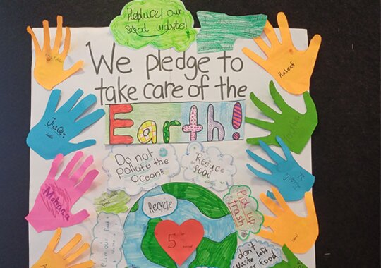 Student-led projects and campaigns, including Waste War, demonstrating real action and impact.